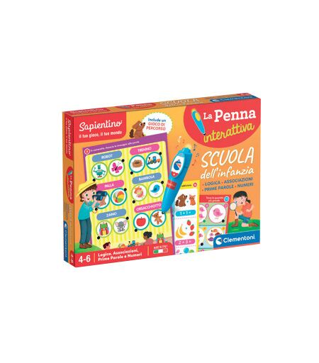 Un compendio di quiz e attivita' educative studiato per gli ultimi anni della scuola dell'infanzia. Con la penna interattiva si potranno risolvere tanti quiz a tema parole, sillabe, prime operazioni e attivita' logiche. 8 schede educative e 16 attivita' di gioco per esercitare la logica e potenziare le competenze, in linea con i programmi delle scuole dell'infanzia. La penna segnala le risposte giuste con suoni e luci, in questo modo il bambino e' in grado di progredire nel gioco in autonomia. Gioco educativo pensato per bambini in eta' prescolare. Ideato, progettato e sviluppato in Italia. ...