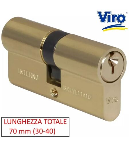 Cilindro VIRO modello " 751.25 " a profilo Europeo , Emergenza Frizionato , lunghezza totale 70 mm (30-40) , fornito con 3 chiavi a profilo Viro . La funzione di "emergenza" anche definita come cilindro Frizionato , consente di aprire il cilindro dal lato esterno anche se una chiave resta infilata nel lato interno DATI TECNICI : - Corpo in ottone massiccio trafilato e decapato - Barilotto in ottone a 4 pistoncini - Chiavi in ottone nichelato , a profilo Viro , 3 in dotazione ...