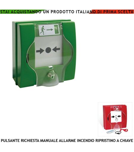 SECURVERA Pulsante manuale di attivazione verde richiesta intervento incendio ripristino a chiave sblocca porte rei en 54-11 cpd
