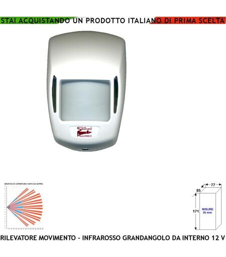 SECURVERA Rilevatore di Movimento Infrarosso Passivo Grandangolo Portata 15 mt da Interno Entro 90 Gradi Rileva Intruso da Allarme Aliment. 12 v Assorbimento