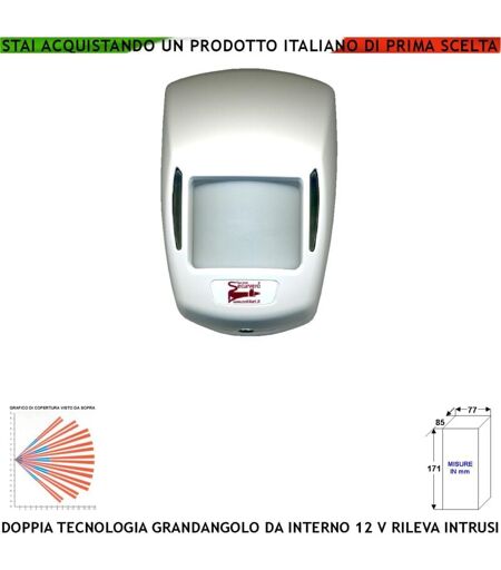 SECURVERA Sensore Movimento Doppia Tecnologia Grandangolo Rileva Intruso Invia Allarme da Interno Portata 15 mt Entro 90 Gradi Alimentazione 12 v Assorbimento