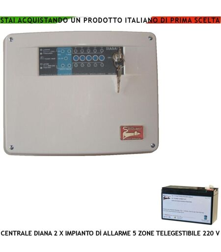 SECURVERA Centrale di Allarme Diana 5 Zone Chiave Meccanica Batteria 12 v 7 Ah Per Impianto Antifurto Filare. Gestisce Sensori Ingresso Per Chiave Remota o