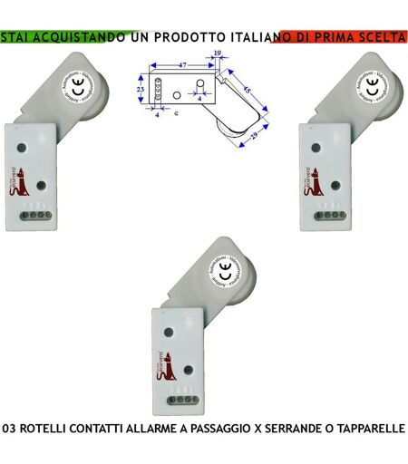 SECURVERA Antifurto Contatto per Serranda 3 Pezzi Rotello Protegge la Tapparella dal Sollevamento la Rotella Antiusura Spinta da Molla Muove lo Switch che