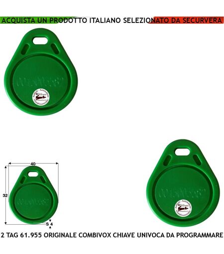 SECURVERA Chiave Trasponder di Prossimità 2 TAG RFID Alta Sicurezza Codice Base Combivox 61.955 Univoco Frequenza di Lavoro 125 KHz Altri Codici Generati