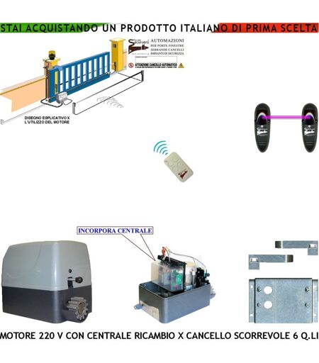 SECURVERA Cancello Scorrevole 6 Quintali Motore 220 V Centrale Di Comando Radiocomando Fotocellule Ricambio Qualsiasi Marca Ce