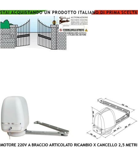 SECURVERA Braccio Articolato Motore 220 v Completo di Accessori Cancello Automatico 1 Anta Battente da 0,5 Fino a 2,5 Metri Ricambio Universale Spinta 250 nm