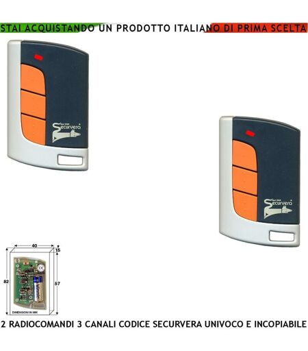 SECURVERA Radiocomando Cancello 3 Canali 2 Pezzi Frequenza 433,92 MHz Potenza 1 mW Portata Aria Libera 60/100 mt Codice Sicurezza Rolling Code 66 Bit