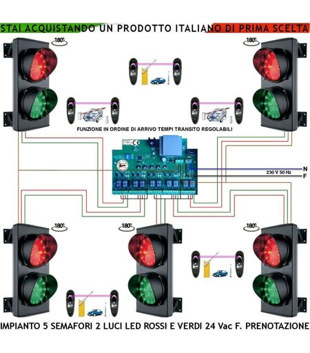 LISTA DETTAGLIATA COMPONENTE - CARATTERISTICHE REALI E FUNZIONI NELLA SCHEDA TECNICA •05 SS-SLD Semaforo 2 Luci 24 Led Verdi e 24 Led Rossi Alimentazione 24 Vac 3 W Fissaggio a Parete IP 65 (Graffe da Palo Optional) •05 SH-SSR Scheda 24 Led Rosi Alta Luminosità Alimentazione 24 Vca 3 W. Luce Puntiforme Amplif. Cablata All&rsquo,interno; del Semaforo •05 SH-SSV Scheda 24 Led Verdi Alta Luminosità Alimentazione 24 Vca 3 W Luce Puntiforme Amplif. Cablata All&rsquo,interno; del Semaforo •01 SK-CS4 Centrale 230 V Gestione Impianto Semaforico Per 2 Luci (Contenitore ABS) Funzione: Automatica Tempi Ciclici Regolabili •05 SS-EVE Coppia Fotocellule Autocentranti 12/24 Vac. Da Parete o Palina (SV-PSF colonnine optional) Sensore Port. 20 Metri Lineari •01 SV-GAR Certificato di Garanzia, Come da Legge: 24 Mesi, Installazione Qualificata D. M. 37/2008, a Vita Contro i Difetti di Fabbrica •01 SV-IST Istruzioni Dettagliate per il Montaggio, Devono Essere Rispettate: I Collegamenti, Le Funzioni Delle ...