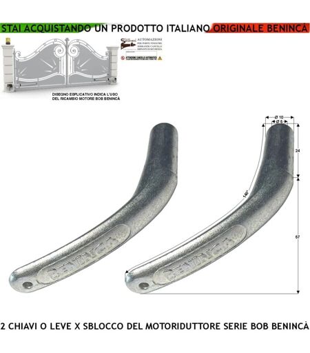 SECURVERA Leva Per lo Sblocco del Motoriduttore bob della Benincà 2 Chiavi 9686877 Per Aprire il Cancello in Mancanza di Rete Elettrica Costruita in Fusione di