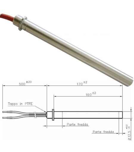 Riferimento HT62706Resistenza accensione con flangia. Diametro: 12,5 mm. Lunghezza totale: 170 mm. Lunghezza sottobattuta: 160 mm. Potenza: 350 Watt. ...