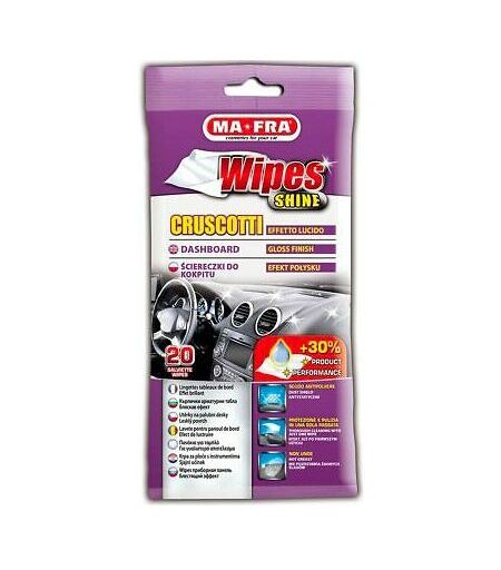 Wipes Clean Mafra Cruscotti; Salviette monouso per donare al cruscotto un effetto lucido e pulito; I panni sono imbevuti del 30% in più di soluzione detergente rispetto alle classiche salviette; Per una maggiore pulizia e protezione. Wipes Clean Mafra Cruscotti Salviette monouso per donare al cruscotto un effetto lucido e pulito. I panni sono imbevuti del 30% in più di soluzione detergente rispetto alle classiche salviette, per una maggiore pulizia e protezione. ...