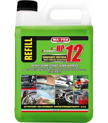 Sgrassatore universale multiuso Performante su tutte le superfici. Piacevole profumo di limone. Garantisce una potente azione sgrassante. Descrizione HP 12, sgrassatore universale multiuso super concentrato ad alte prestazioni, il meglio della tecnologia Mafra applicata alla moderna detergenza, è il più innovativo fra gli sgrassanti tecnici multiuso. Potente, rapido e ad ampio spettro di utilizzo, offre prestazioni imbattibili su qualsiasi tipo di superficie, in tutta sicurezza grazie al suo pH bilanciato. Con HP 12 riuscirete a risolvere facilmente e in modo straordinariamente efficace ogni problema di sgrassaggio e detergenza intensiva a 360°. Questo straordinario prodotto, utilizzato con grande soddisfazione dai principali team di motorsport, dà il meglio di sé su sporchi difficili in auto, garage, imbarcazioni, moto, camper e anche in casa. ...