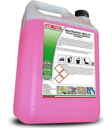 Descrizione Mafrapav Multi e' un lavapavimenti solventato, a schiuma frenata, adatto a molteplici tipologie di sporco. La sua particolare formulazione lo rende adatto ad un utilizzo con macchine lavasciuga. Il prodotto non danneggia le parti in alluminio e le pompe di aspirazione all'interno delle macchine lavapavimenti. Confezione da 5 litri. ...