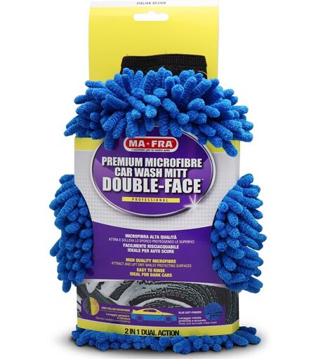 Guanto in microfibra di alta qualità double-face, ideale per pulire il veicolo a mano in sicurezza. Dal formato 30 x 20 cm, questo guanto può essere utilizzato per una pulizia attenta: il lato in microfibra per il lavaggio generico e la rifinitura, mentre il lato con soft-fingers blu per il lavaggio iniziale profondo e accurato. ...