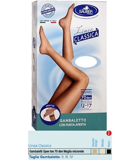 SAUBER Linea CLASSICA Open Toe - GAMBALETTO 70 den Maglia Microrete - Descrizione Può essere utilizzato durante la stagione estiva per continuare a godere dei benefici della compressione mantenendo la libertà delle dita. Realizzato in maglia microrete a doppia ricopertura. - Colori: - Medio - Nero… ...