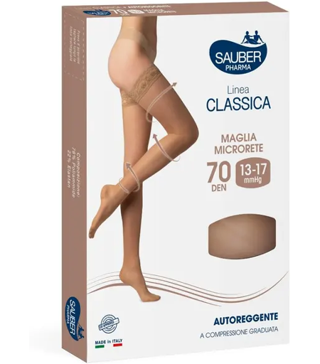 Linea Classica Calza a Compressione 70 Denari Autoreggente Beige Taglia 2 - DESCRIZIONE PRODOTTO: - La Calza a Compressione 70 Denari Autoreggente della Linea Classica Sauber è un simbolo di eleganza e comfort. Realizzata con un filato pregiato doppio ricoperto per una migliore aderenza e durata ne… ...