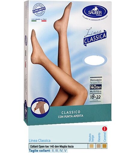 SAUBER Linea CLASSICA Open Toe - COLLANT 140 den Maglia Liscia - Descrizione Può essere utilizzato durante la stagione estiva per continuare a godere dei benefici della compressione mantenendo la libertà delle dita. Realizzato in maglia liscia. - Colori: - Caramel - Deserto - Neutro beige - Taglie… ...