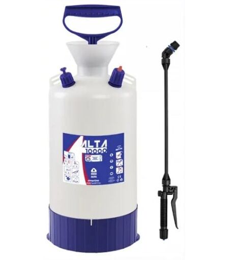 La pompa Alta 10000 FPM Viton ad accumulo di pressione si caratterizza dalle eccellenti caratteristiche tecniche. Le guarnizioni FPM (Viton) li rendono indicati per irrorare oli, lubrificanti, disinfettanti, detergenti. Stabile su piano inclinato. - Valvola di sicurezza e indicatore di pressione - Molle in acciaio inox AISI 316 - Maniglia portalancia - Largo imbuto - Lancia Punto - Curva - Cinghia resistente Altezza spruzzo: 450 cm Angolo spruzzo: 60° Capacità massima: 10,75 lt Capacità netta: 8,50 lt Capacità pompata: 250 cc Cc/min 3 bar: 620 cc Lunghezza spruzzo: 900 cm Pressione: 3 bar Regolatore di pressione: 1 Superficie trattabile: 100/1000mq Dimensioni: 22.0X22.0X57.0 cm Peso: 2,3 Kg Tipologia:Pompa a spalla manuale ...