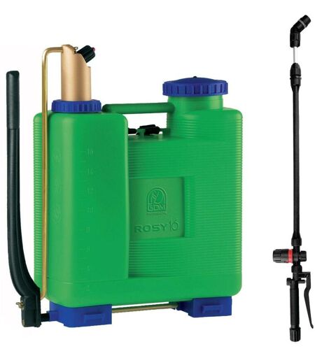 Descrizione Rosy 16 e' una pompa a pressione a zaino per la cura e la protezione con antiparassitari di giardini, orti, frutteti, serre, e per l' erogazione di sostanze diserbanti. Totalmente ermetica, pompa ambidestra, regolatore di pressione, tubo retinato da 120 cm, resistente al calore e al gelo con pistone in ottone. Consigliata per superfici fino a 1500 mq. Capacita' della pompa del pistone: 565 cc Capacita' max.: 17,95 lt Capacita' netta: 16 lt Getto regolabile (raggio max. 9 mt, altezza max. 4,5 mt, angolo apertura 60°) Pressione di lavoro: 2/5 bar Flusso medio (con 3 bar di pressione): 620 cc/min ...