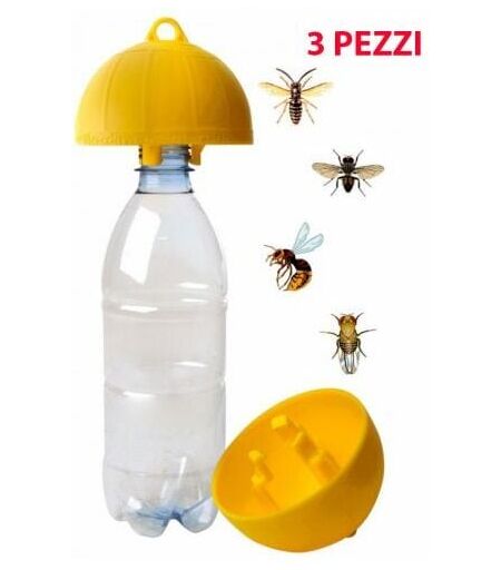 TRAPPOLA ECOLOGICA 3 PZ Permette di catturare gli insetti nocivi senza utilizzare prodotti chimici. Costituita da un adattatore giallo applicabile ad una comune bottiglia in plastica dell'acqua.Protezione da mosche e insetti nocivi in uliveti, frutteti,vigneti, pollai, stalle, allevamenti,scuderie, canili, giardini, terrazze, etc. ...