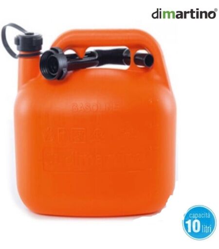 Tanica in plastica DIMARTINO per carburanti , capacità 10 Litri , certificate per il trasporto via terra (ADR) e via mare (IMDG) Tappo con linguetta di sicurezza , scala graduata e beccuccio flessibile con sistema di sfiato antigorgoglio Adatta a contenere oli , lubrificanti , disarmanti edili , detergenti e disincrostanti ...
