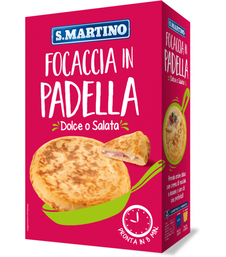 Dolce o salata? Con la Focaccia in Padella S.Martino scegli tu la versione che preferisci...pronta in soli 8 minuti di cottura, non ti serve nemmeno il forno, la cuoci direttamente in padella! Scegli gli ingredienti che preferisci e farcisci la focaccia ispirandoti alla tua fantasia: con formaggi e salumi, verdure grigliate, salse oppure gustala in versione dolce, con creme spalmabili o frutta. Le varianti per il ripieno sono infinite! Suggerimenti: un'ottima idea è la focaccia ripiena con prosciutto cotto e scamorza. Provala anche dolce con crema di nocciole e banane. ...