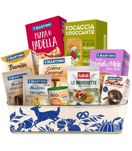 La Robusta S.Martino è un'elegante confezione, dal design moderno e decorazioni jungle, ricca di specialità dolci e salate, ideali anche per chi ha poco tempo in cucina, come la Pizza S.Martino che cuoce in padella anziché in forno. Cremosi dessert, cioccolata calda in tazza, croccanti bruschette e tante altre specialità...scoprile tutte! In OMAGGIO la scatola di latta "Fauna" ideata per racchiudere i prodotti, ma anche prezioso oggetto da collezione disponibile in edizione limitata. ...