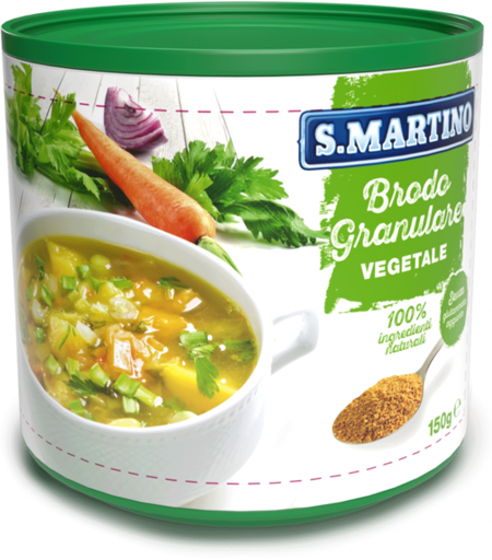 Tutto il gusto delle verdure racchiuso nel Brodo Granulare S.Martino. Formulato con ingredienti 100% naturali, insaporisce tutti i tuoi piatti in modo sano e genuino. Per un brodo dal gusto delicato, ma allo stesso tempo ricco di verdure, non può mancare nella tua dispensa! Caratteristiche: senza glutammato aggiunto e senza glutine. Grazie al suo pratico dosatore, è facile da usare...lo puoi aggiungere alla ricette che stai preparando in ogni momento della cottura. Qualche informazione in più: per preparare il brodo basta sciogliere 1 cucchiaio da tavola (circa 10/11g) in 500 ml di acqua bollente. ...