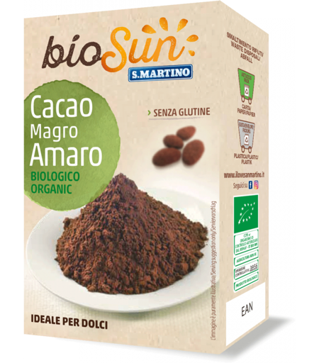 Il profumo deciso e il sapore intenso del cacao, ottenuto da fave di cacao provenienti da coltivazioni biologiche. È così che il Cacao Amaro BioSun diventa il tuo ingrediente indispensabile per tante ricette: torte, muffins, plumcake, piccola pasticceria e dessert. Provalo anche per preparare una gustosa tazza di cioccolata calda e per donare il tocco finale come decorazione al cappuccino. Caratteristiche: il cacao magro amaro BioSun contiene una quantità inferiore di burro di cacao rispetto al classico cacao amaro, per una formulazione a basso contenuto di grassi. Curiosità: con la doppia certificazione biologica e vegana, è ideale anche per chi non vuole rinunciare ad un mondo naturale e ad una alimentazione consapevole. ...