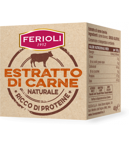 L’estratto di carne è un perfetto aiuto in cucina 100% naturale per insaporire ed esaltare le tue ricette. Usalo su carne, arrosti, sughi, risotti o dove vuole la tua fantasia...ne basta poco per rendere tutto più gustoso! Per insaporire i tuoi piatti aggiungi l'estratto di carne (pari a una punta di coltello) durante la preparazione o a fine cottura. Se vuoi preparare un ottimo brodo sciogli un cucchiaino di estratto di carne in un litro di acqua bollente. Caratteristiche: l'estratto di carne è naturale, senza conservanti, senza grassi e ricco di proteine. È un concentrato di carne magra bovina di prima scelta. ...