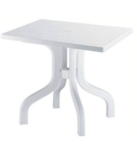 Tavolo in resina di prima qualità di colore bianco, riciclabile al 100%, resiste ad agenti atmosferici, muffa, smog e polvere. Di forma quadrata, è dotato di un piedino regolatore. Le gambe e il piano sono ribaltabili: questa modalità di apertura e chiusura facilitata permette di riporlo in pochissimo spazio e gli conferisce estrema maneggevolezza e facilità di trasporto. Delle dimensioni di 80x80x73 cm ...