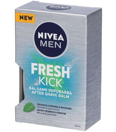 Nivea Men Fresh Kick Balsamo Dopobarba 100 ml, Dopobarba con Menta e Acqua di Cactus rinfrescanteNivea Men Fresh Kick Balsamo Dopobarba – Idrata, rinfresca e lenisce la pelle dopo la rasaturaNivea Men Fresh Kick Balsamo Dopobarba si prende cura della pelle dopo la rasatura barba. La consistenza delicata e non grassa del balsamo da barba svolge un’efficace azione lenitiva e rinfrescante sulla cute appena rasata, proteggendola e rigenerandola in profondità. La sua formula delicata è arricchita con principi idratanti, Menta & Acqua di Cactus, ingredienti speciali che svolgono un’efficace azione lenitiva donando alla pelle un'idratazione intensa e duratura e un effetto immediatamente rivitalizzante. Vantaggi del prodotto:Balsamo dopobarba idratante rinfrescanteFormula delicata non grassa con Menta & Acqua di CactusProtegge e rigenera la pelle in profondità Svolge un' efficace azione lenitiva Rivitalizza istantaneamente la pelleCompatibilità cutanea dermatologicamente comprovataModo d'usoApplicare sull'area interessata dalla rasatura.IngredientiAqua, Alcohol Denat., Glycerin, Ethylhexyl Cocoate, C12-15 Alkyl Benzoate, Parfum, Panthenol, Tocopheryl Acetate, Menthol, Polyglyceryl-10 Stearate, Carbomer, Xanthan Gum, Sodium Hydroxide, Pantolactone, Citric Acid, Sodium Benzoate, Linalool, Limonene, Citronellol, Alpha-Isomethyl Ionone. ...