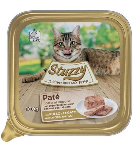 Un mix di pollo e fegato, con veri pezzi di carni e ingredienti naturali. Una ricetta completa cotta al vapore, dalla consistenza vellutata. Genuinità e tanto gusto, una delizia per il gatto. Cruelty free. Ingredienti Carni e derivati* 65% (pollo* 16%, fegato* 16%), sottoprodotti di origine vegetale*, sostanze minerali. *ingredienti naturali Additivi/kg: Additivi nutrizionali: Vit. D3 200 U.I., Vit. E 100 U.I., Zn (solfato di zinco monoidrato) 20 mg, Mn (solfato manganoso monoidrato) 3 mg. Componenti analitici: Proteine 9,5%; Grassi grezzi 0,4%; Fibre grezze 4,5%; Ceneri grezze 2%; Umidità 82%. Modalità d'uso 1 vaschetta a pasto - un gatto adulto (circa 4 kg) necessita di 3 vaschette al giorno. Conservazione Conservare a temperatura ambiente. Validità a confezione integra: 36 mesi. Formato Vaschetta da 100 g. ...