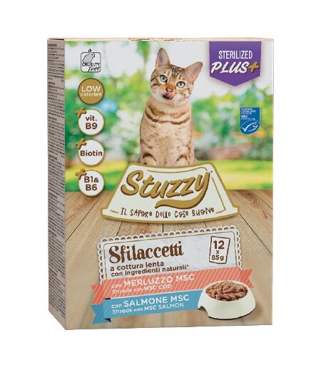 STUZZY GATTO SFILACCETTI MULTIPACK ADULTO STERILIZZATO MERLUZZO & SALMONE CF. (12X85) GR ...