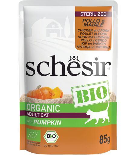 whitebridge pet brands srl Schesir Gatto Bio Organic Busta Adulto Sterilizzato Pollo, Maiale & Zucca 85 Gr