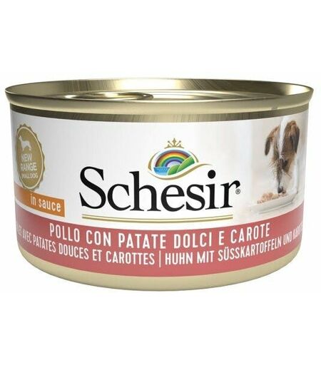 POLLO CON PATATE DOLCI E CAROTE Descrizione Una ricetta Schesir a base di pollo, patate dolci e carote, in una salsa vellutata e irresistibile. Tutti gli ingredienti vengono cotti al vapore e lavorati a mano. Porzione ideale per cani di piccola taglia. Senza conservanti e coloranti aggiunti. Cruelty free. Ingredienti 38% pollo, 6% patate dolci, 6% carote, 3% spinaci, 6% riso, 1,3% amido di patate, 0,3% brodo di pesce. Componenti analitici: Proteine 8,2%; Grassi grezzi 0,2%; Fibre grezze 0,5%; Ceneri grezze 1%; Umidità 89%. Modalità d'uso Fino a 2 lattine al giorno. Si può abbinare agli alimenti umidi completi, o ai croccantini. Servire a temperatura ambiente. Conservazione Conservare a temperatura ambiente. Validità a confezione integra: 36 mesi. Dopo l'apertura, conservare il prodotto in frigorifero e utilizzarlo entro 48 ore. Formato Lattina da 85 g. ...