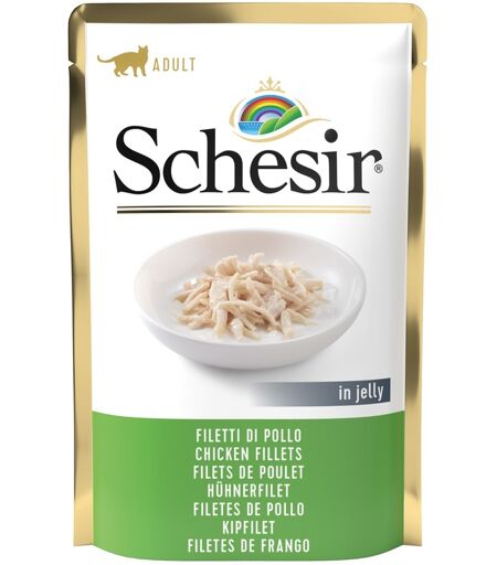 whitebridge pet brands srl Schesir Gatto Busta In Jelly Adulto Filetti Di Pollo 85 Gr