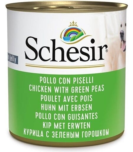 Pollo con Piselli in Gelatina Il top della qualità ed un’ampia varietà di gusti per soddisfare il palato del tuo cane: con ingredienti naturali al 100%, privi di conservanti e coloranti aggiunti; le parti migliori del pesce e della carne, cotte al vapore e lavorate a mano. Nel formato convenienza in lattina da 285 g. Composizione Pollo 45% (filetti 20%, ventrigli 13%, cuori 8%, fegatini 4%), Piselli 5%, Riso 5% Additivi/kg: additivi nutrizionali Vit. A 1650 U.I. Vit. E 10 mg Componenti analitici Proteina 10% Oli e grassi grezzi 2% Fibra grezza 0,5% Ceneri grezze 2% Umidità 83% 75 kcal/100 g Istruzioni per un uso corretto Somministrare fino a 2 lattine al giorno, in associazione con alimenti umidi completi e/o croccantini Schesir. Servire a temperatura ambiente. Formato 1 Lattina da 285g. ...