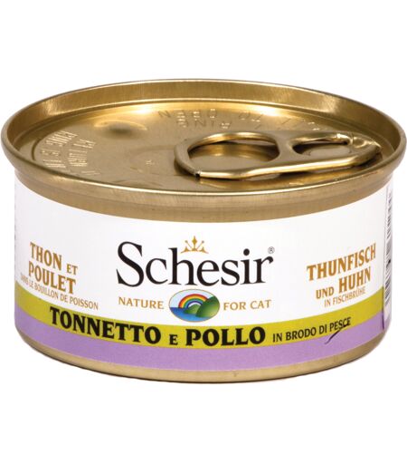whitebridge pet brands srl Schesir Gatto Lattina In Brodo Di Pesce Adulto Tonnetto & Pollo 70 Gr