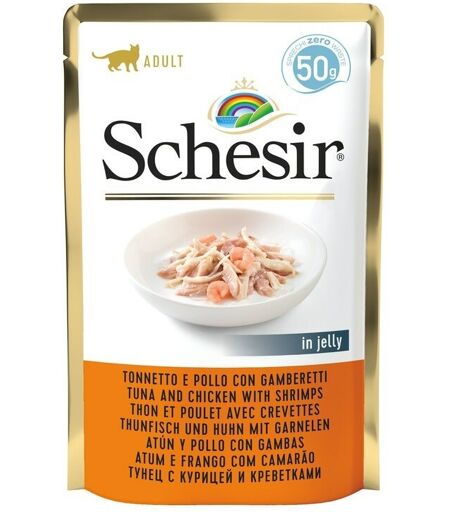 Schesir Tonnetto E Pollo Con Gamberetti Cibo Umido Gatti Adulti Bustina 50g