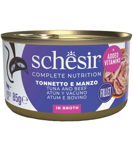 whitebridge pet brands srl Schesir Gatto Lattina In Acqua Di Cottura Adulto Tonnetto, Manzo & Riso 85 Gr