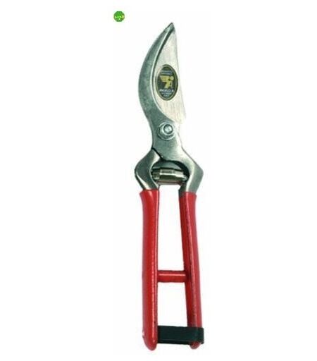 Le forbici cesoia modello Vigna, professionale da potatura per giardinaggio a lama curva, utile per impedirne lo scivolamento durante il taglio. Chiusura di sicurezza con laccetto, a taglio passante, manico in plastica dura resistente, lama in acciaio. ...