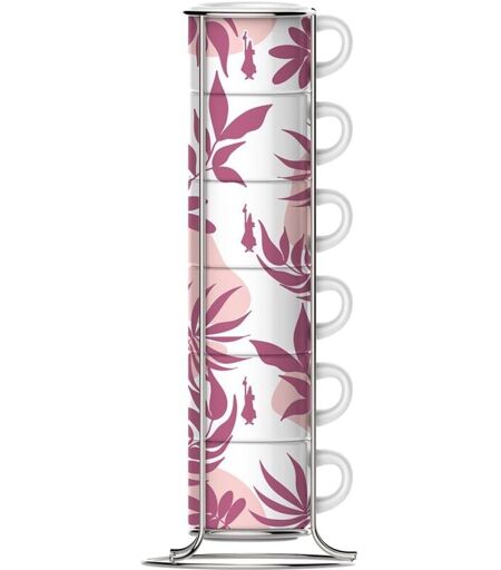 Bialetti primavera zestaw 6 filiżanek do espresso na stojaku - różowy