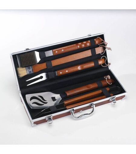 Ompagrill Set Utensili Barbecue 5 Pezzi in Acciaio Inox Con Valigetta In Radica -