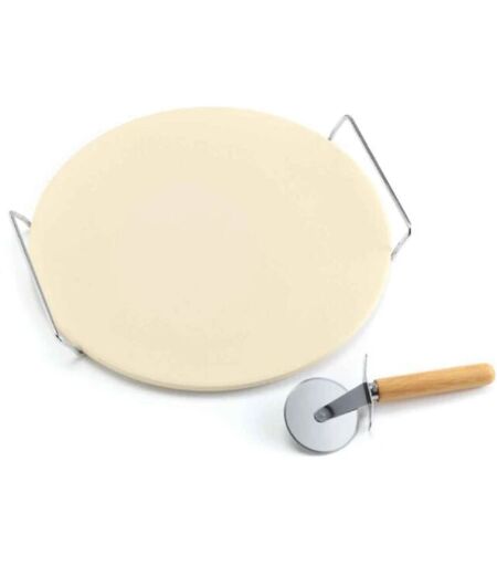 Ompagrill Set Pietra Refrattaria Rotonda 33 cm con Supporto e Rotella Tagliapizza -