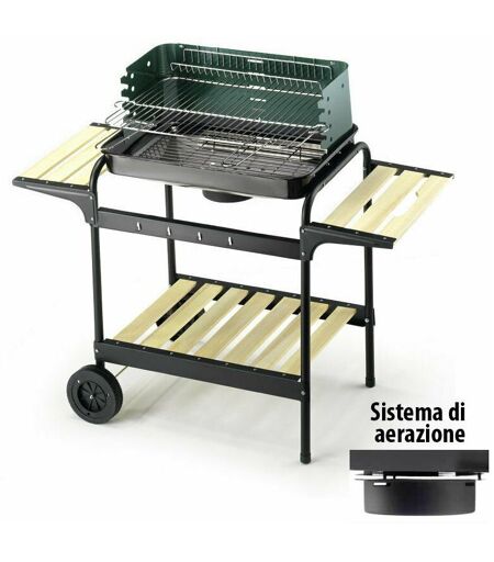 Ompagrill - Barbecue Carbonella Portatile Carrello Ruote Ripiani Legno Carbone