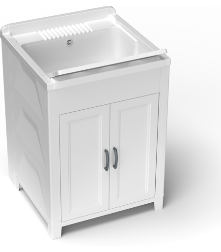 Il mobile lavatoio di dimensioni 60L x 60P x 85H cm in resina termoplastica di PP, è il prodotto ideale per chi ha esigenze di spazio e praticità. Dotato di una chiusura a due ante, viene fornito in KIT di montaggio con istruzioni illustrate. La vasca in resina, con grande capacità, è resistente ai detergenti e agli acidi di uso comune. Forabile per l’installazione di un mixer sia sul lato destro che sinistro, si rivela una soluzione eccellente per differenti tipologie di utilizzo. Ideale sia per ambienti interni che esterni, viene fornito completo di asse di lavaggio in PP, sifone con piletta e troppopieno. ...