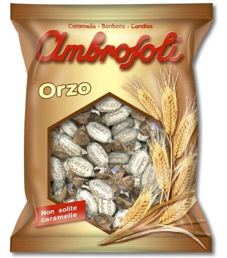 Ambrosoli Orzo - Caramelle. Ingredienti Zucchero; sciroppo di glucosio; estratto d'orzo; malto; miele. Caratteristiche nutrizionali per 100 g Valore energetico384 kcal / 1555,2 kJ Proteine0 g Carboidrati96 g Grassi0 g Formato Busta da 150 g. ...