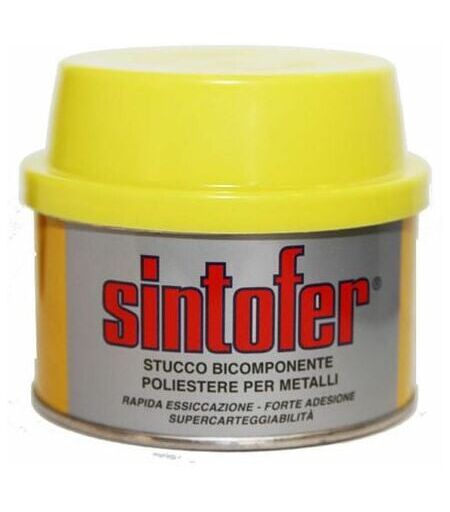 SINTOFER STUCCO BICOMPONENTE POLIETSERE PER METALLI Stucco per carrozzeria.Universalità di impiego per ogni tipo di metallo, zinco compreso.Caratterizzato da facile spatolabilità, indurimento rapido e ottima carteggiatura.ML. 175 ...