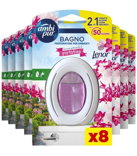 AMBIPUR Ambi Pur Bagno Lenor Portofino, Deodorante per Ambienti ad Azione Continua Eliminazione e Prevenzione degli Odori, 8 Pezzi